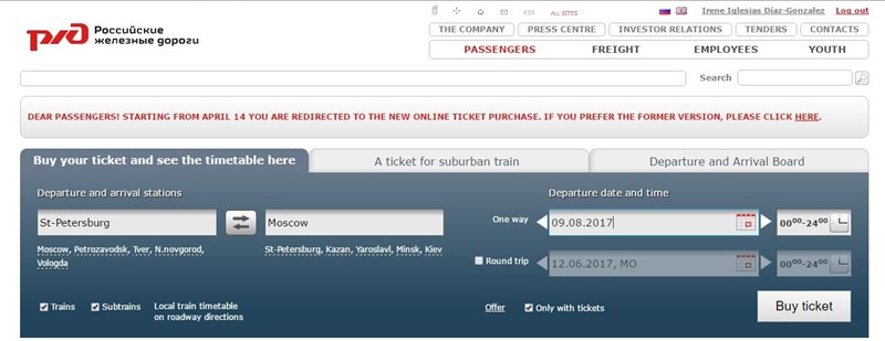 Al principio, comprar los billetes de tren puede resultar algo caótico y desesperante, pero os voy a dar unos sencillos pasos para que lo hagáis con facilidad. Todo se hace a través de la web de ferrocarriles rusos (la mayoría de secciones tienen versión en inglés). [Haz click en las imágenes para ampliarlas]